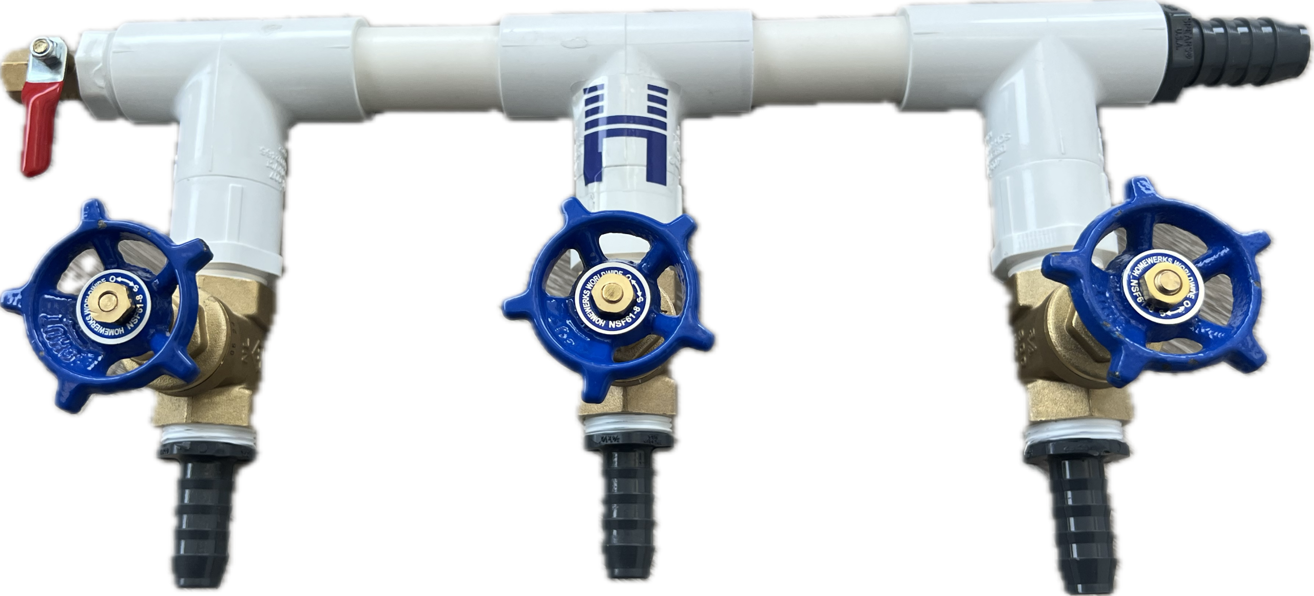 HIBLOW manifolds, equipped with two or three gate valves, offer more precise airflow control than standard ball valve designs. The smooth, incremental adjustment of gate valves makes it easy to fine-tune airflow to each diffuser, ensuring optimal performance, system balance, and efficiency. An integrated condensation blowout valve makes it easy to purge moisture from the incoming airline without disconnecting hoses. Condensation in the airline, especially with longer runs, can restrict airflow, limit system efficiency, and reduce the life of the aerator.